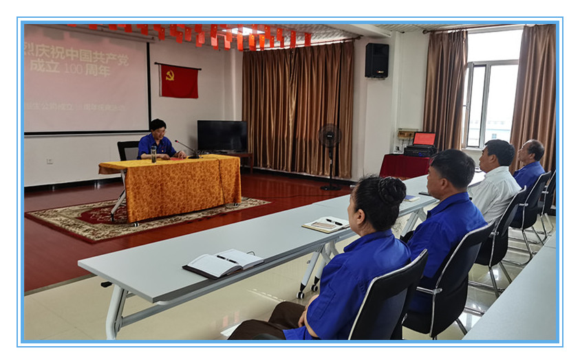 2021年7月3日上午8:00點,盤錦恒生公司在四樓會議室舉行熱烈慶祝中國共產黨成立100周年大會,全體黨員在面向黨旗重溫入黨誓詞,黨支部書記胡志庭作了重要講話。