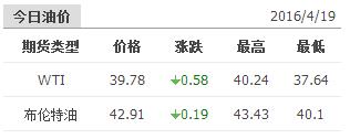 2016年4月19日國際原油價格表