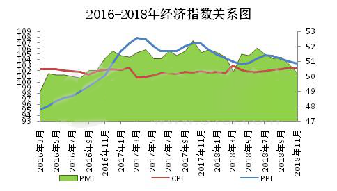 11月份國(guó)家統(tǒng)計(jì)局?jǐn)?shù)據(jù)顯示,全國(guó)居民消費(fèi)價(jià)格指數(shù)(CPI)指數(shù)102.2,環(huán)比下降0.3%,同比上漲2.2%;工業(yè)品出廠價(jià)格指數(shù) (PPI)102.7,從同比看,PPI同比上漲2.7%,漲幅較上月回落0.6%。CPI與PMI雙雙下行,表明經(jīng)濟(jì)仍然面臨下行風(fēng)險(xiǎn),尤其近期國(guó)際油價(jià)持續(xù)大跌,進(jìn)一步加大了工業(yè)領(lǐng)域未來潛在的通縮壓力。采購經(jīng)理指數(shù)(PMI)指數(shù)50.0,同比降低3.47%,創(chuàng)2016年以來新低。