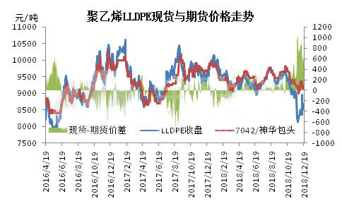 12月份聚乙烯期貨漲勢(shì)利于現(xiàn)貨走勢(shì)。連塑L1905合約自11月底跌至新低后觸底反彈,呈震蕩上行走勢(shì),19日漲至8715最高。短期來看,日線下方均線出現(xiàn)金叉,短期連塑存繼續(xù)上行走勢(shì);但持倉方面永安期貨空單占據(jù)優(yōu)勢(shì),加之連塑收于三連陽,因此整體漲幅有限,不排除技術(shù)性回落可能。現(xiàn)貨方面,雖期貨面持續(xù)上行,帶動(dòng)石化庫存有所消耗,但并未從實(shí)質(zhì)性帶動(dòng)現(xiàn)貨面氣氛好轉(zhuǎn),下游心態(tài)依舊謹(jǐn)慎,多隨用隨拿,出貨平平。