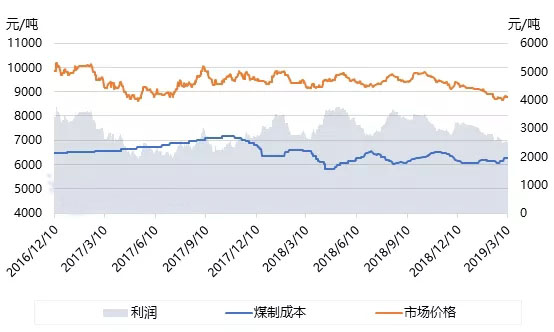 由上圖可見,進入2019年,煤制聚乙烯的生產利潤逐漸減少。而增值稅的降低,對西北生產企業來說,意味著運輸成本或有所降低,如當前運送到山東地區銷售大約需要300元/噸的運輸成本,降稅后或將減少3元/噸,這就進一步增加了煤化工生產企業的利潤空間。