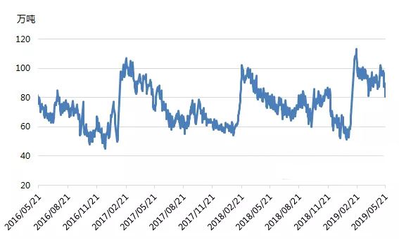 從上面兩圖看,從上周末開始石化庫存快速下降,盡管周末庫存小幅回升,但周一至今的表現依然值得欣慰,目前已跌破80萬噸。期貨帶動下的現貨市場連續走高,石化價格不斷的調漲令下游買漲不買跌心態較濃,貿易商積極低位囤貨,因此中宇資訊認為,在下游積極尋貨下,石化的庫存仍會繼續下降,不過由于期貨回落,現貨市場受此影響,悲觀心態再生。